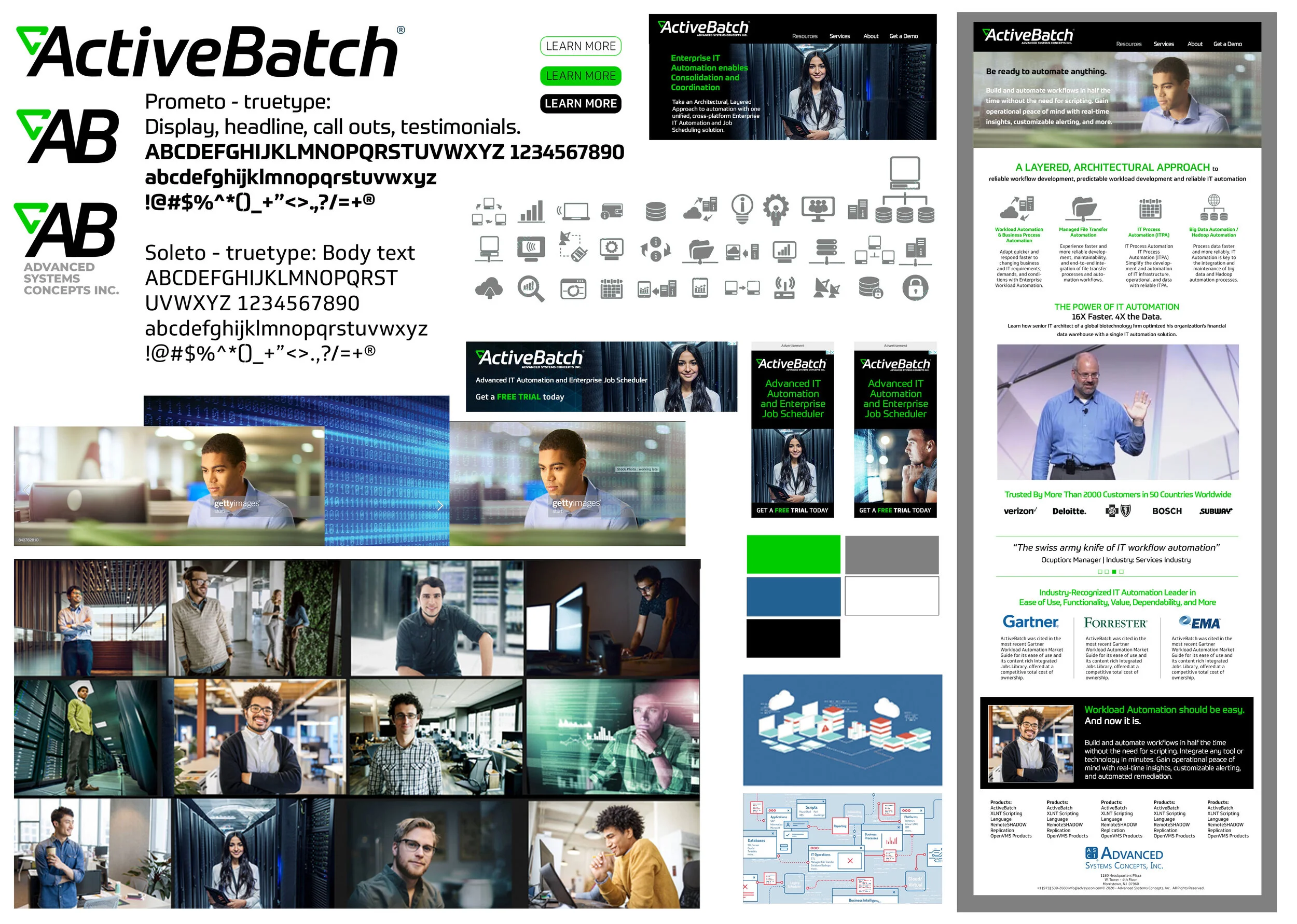 The company’s flagship product, Activebatch, was to become the customer facing brand, however, the parent company name still held brand equity and needed to appear within the new branding and on the website. I combined the logos into one cohesive design.