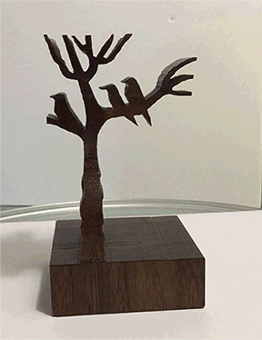 Description: Micro targeted direct-marketing campaign consisting of a hand delivered wood sculpture that changes shape when turned 90 degrees.